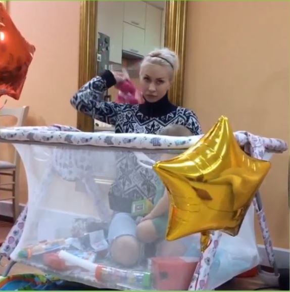 Саша Задойнов выложил в интернет видео, на котором Элина играет с Александрой в манеже. Элина пообещала прибить его за такой поступок.