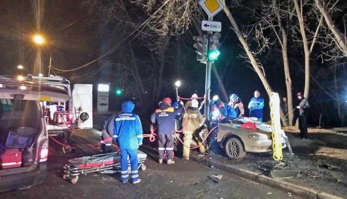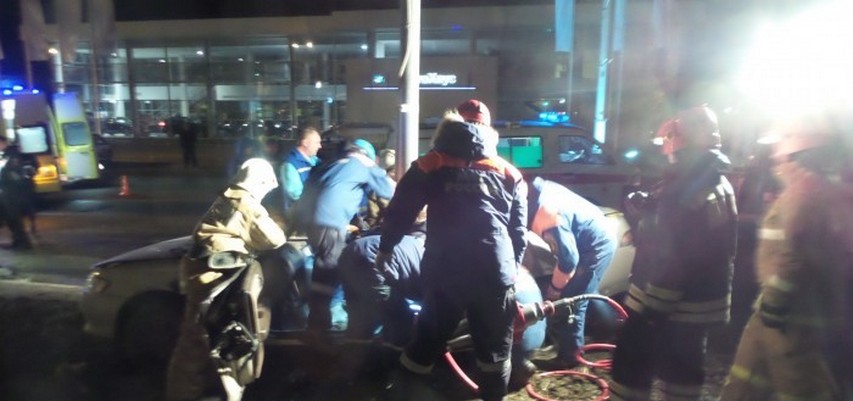 В Екатеринбурге иномарку Toyota «намотало» на столб, спасатели вырезали людей из машины более 2-х часов