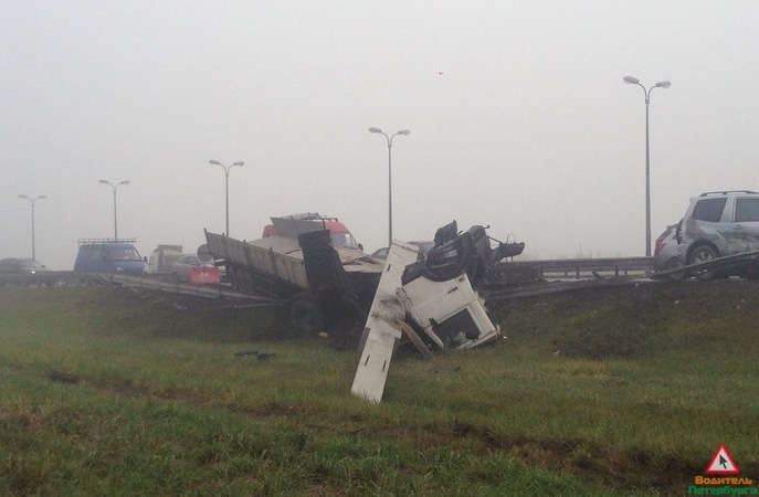 Петербург: на КАД в отбойник влетела фура, водитель грузовика остался жив
