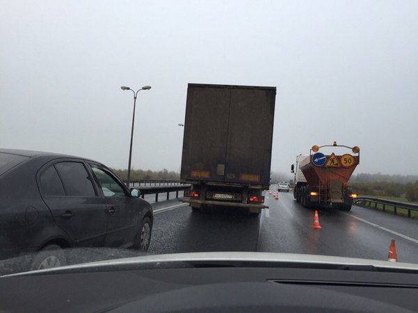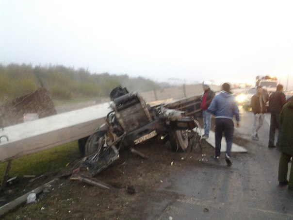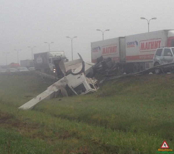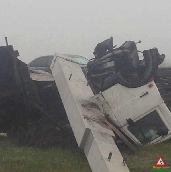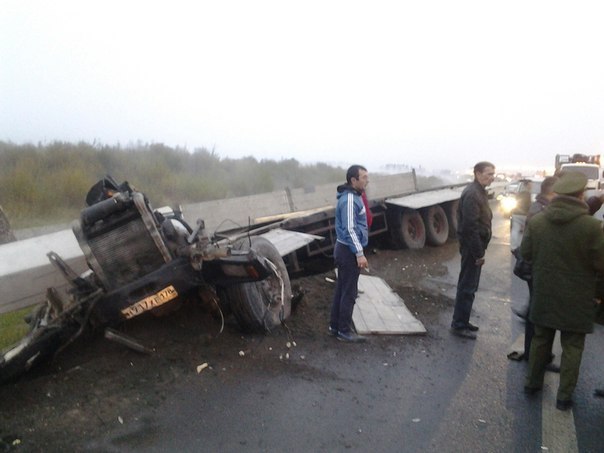 "Две царапины на лбу", - констатировали свидетели. С их же слов, грузовик шел на обгон, а потом его понесло по дороге, по счастью он никого не задел и оказался в отбойнике.