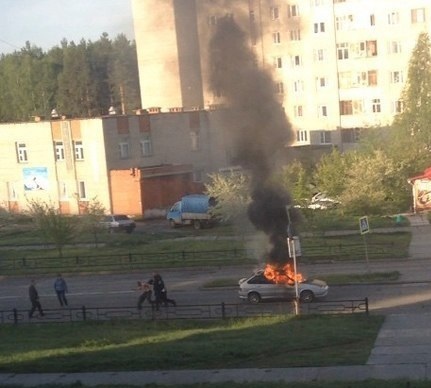 ГУ МВД по Свердловской области комментирует произошедшее следующим образом: "Полиция приняла вызов от жителей дома по улице Мира. По прибытию на место сотрудникам удалось вытащить из горящего ВАЗ-2114 пьяного мужчину". Пожарным удалось справится с огнем. Мужчина не переставал повторять, что хочет свести счеты с жизнью после развода с женой.