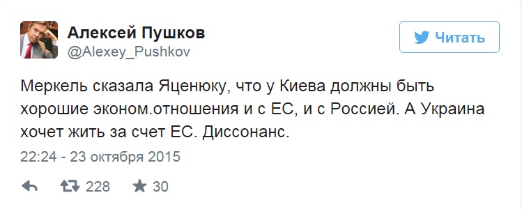 По мнению Пушкова, в позициях Германии и Украины наметились серьезные разногласия. Политик отметил, что Украина хочет жить за счет Евросоюза, что, очевидно, не устраивает ФРГ.
