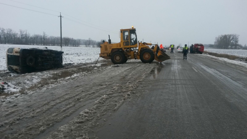 Дорожная авария произошла примерно в 07:30 на автодороге в Ленинградском районе края. На выезде из поселка Первомайский водитель пассажирского автобуса, следовавшего в станицу Ленинградскую, решил совершить обгон. Мужчина не справился в выполнением маневра, и машина с пассажирами оказалась в кювете, где "легла на бок".