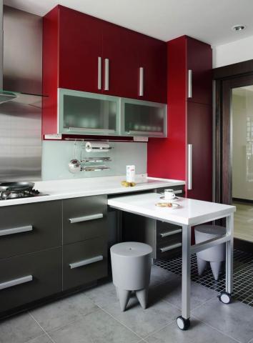 Складывайте все, что можно сложить. Стол можно сделать откидным, рабочую поверхность выдвижной. Просчитайте все варианты, как сэкономить пространство.
