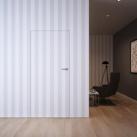 Невидимые межкомнатные двери подразумевают полностью "зашитую" в стену дверную коробку. Максимум, что остается на виду - очертания дверей и ручка.
