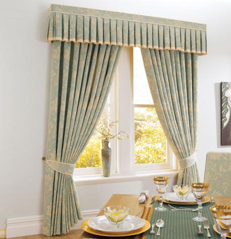 Если у вас маленькая кухня, придайте ей объем при помощи вертикальных складок на шторах. Сами шторы при этом лучше выбирать длинные, без декора.