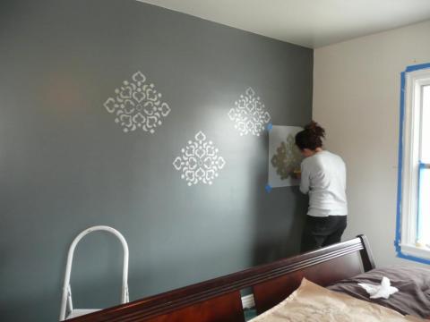 Трафарет и краска - еще один способ шикарно обыграть стены в интерьере. В магазинах продаются уже готовые фигурные насадки на валик для нанесения штампов на стену или распечатанные готовые орнаменты под покраску. Вы также можете проявить собственное умение и создать трафарет самостоятельно. Не бойтесь ярких красок - особенно круто такой стиль оформления смотрится в детской комнате. А вот для спальни идеальны будут легкие тона.