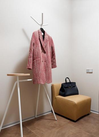 Если площадь коридора совсем не позволяет вам развернуться, выбирайте угловую вешалку. Это наиболее подходящий формат для интерьера прихожей.