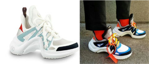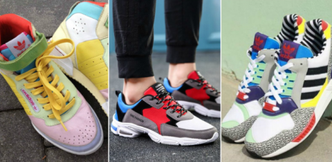 Среди актуальных цветов – белый, оранжевый, зеленый, красный, неоновый, кислотный, бледно-розовый. В тренде комбинированная обувь, либо оригинальные сочетания – синие кроссовки с оранжевыми шнурками, например. Стильными остаются кроссовки в горох, анималистические принты, геометрические фигуры.