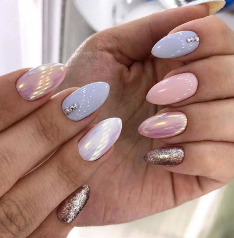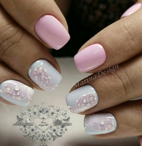 Для праздничного и вечернего маникюра выполнить красивый дизайн с декором, добавив стразы, камни, песок, блёстки, фольгу и т.д. Украшение на ногтях может быть совершенно разным, всё зависит от вашей фантазии и умения и профессионализма мастера маникюра.