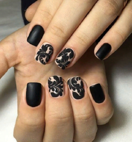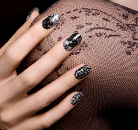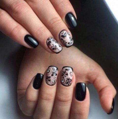 Роскошный дизайн ногтей с чёрным кружевом