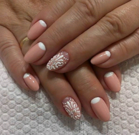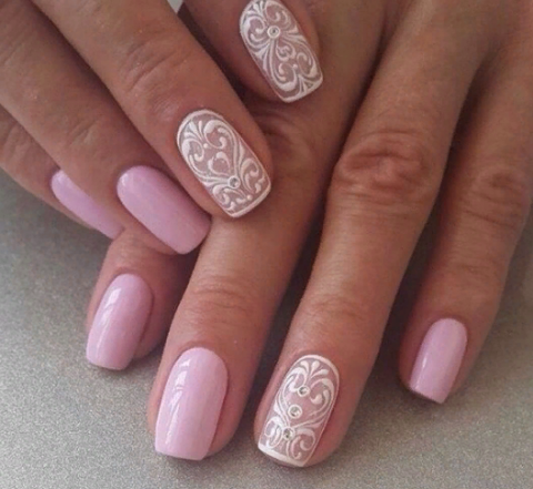 Кружевные рисунки и принты на ногтях создают невероятно женственный и чувственный дизайн ногтей. Такой модный маникюр делают для особенных случаев, праздничных вечеров и торжеств.