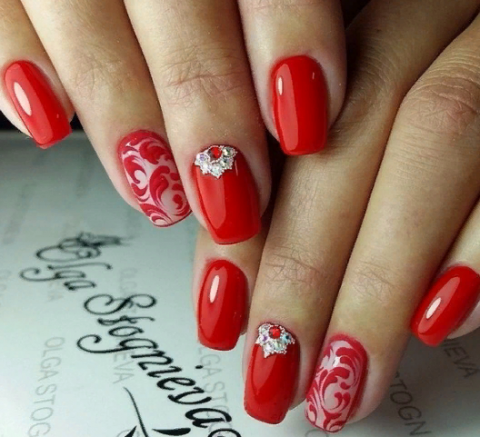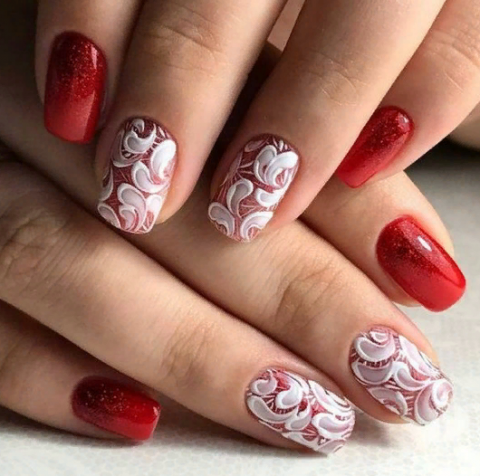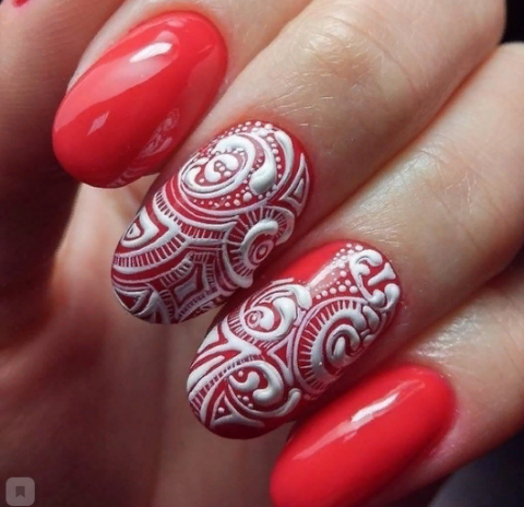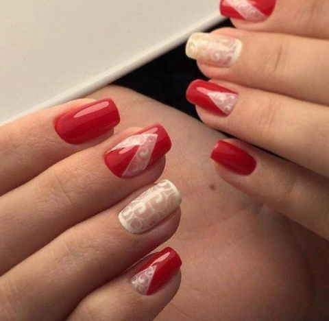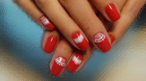 Кружевной маникюр в красном цвете