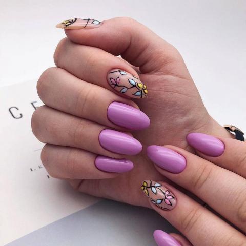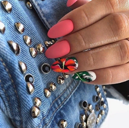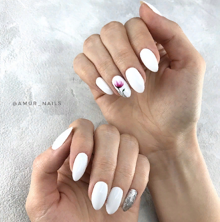 Не забудьте про цветок на ногтях. Именно один цветок на одном или двух пальцах сделает маникюр стильным, а руки изящными и нежными.
