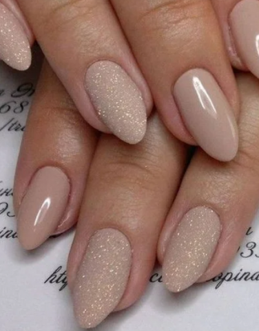 Добавьте блёстки в дизайн и нюдовый маникюр „заиграет“ по-новому.