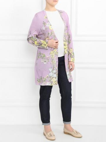 Джинсовку можно заменить на трикотажный кардиган. Если речь идет о более женственном образе, то можно подобрать красивый шелковый кардиган с цветочным принтом.