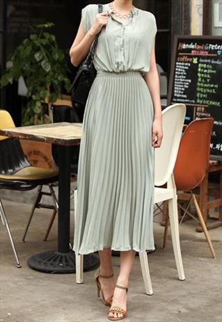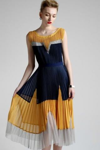Плиссированая юбка у платьев очень хорошо смотрится на худых и высоких фигурах.