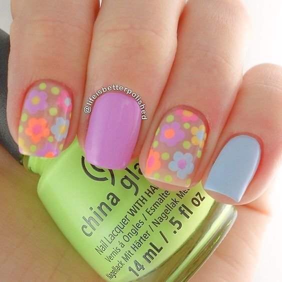 Полупрозрачный маникюр с ярким акцентом - тренд 2019
