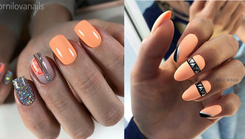 Ярко-персиковый плавно перекочевал в осенний дизайн ногтей