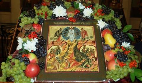 Облачение православных священнослужителей и убранства храма белые, это призвано напомнить верующим о фаворском свете. Накануне читаются паремии и поется канон, в котором подчёркивается величие события Преображения Господня. В сам день праздника служится литургия, после которой проходит водосвятный молебен с чтением особой молитвы «На освящение начаток овощей (плодов)».