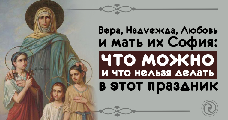 День Веры, Надежды, Любви 30 сентября 2017 года: что нельзя, а что можно и обязательно нужно сделать в этот день. 30 сентября является одной из важных памятных дат в церковном календаре. В этот день православная церковь вспоминает трех сестер-великомучениц - Веру, Надежду, Любовь, а также их мать Софию.