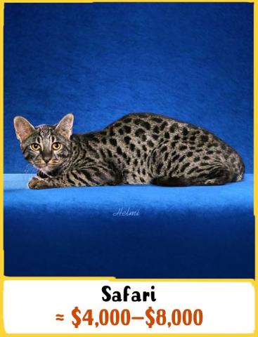 В крови этой кошки кровь дикого кота Джеффроя и домашней кошки, весит она до 11 кг. Была выведена в США при изучении лейкемии.