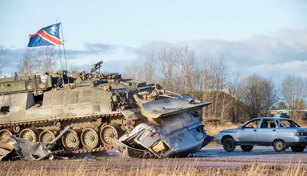 Накануне британские танкисты провели в Эстонии совместное учение, отработав преодоление препятствий в условиях населенного пункта. Препятствием стали старые легковушки, которые в итоге все «погибли» под гусеницами тяжелой техники.