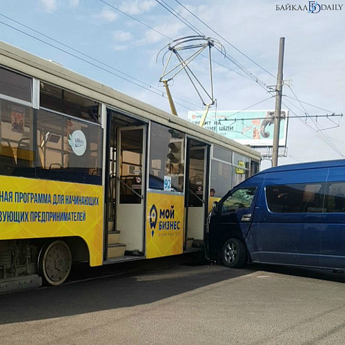 В Улан-Удэ микроавтобус врезался в трамвай, пострадали два человека