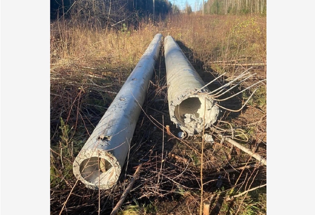 На фото запечатлены верхние части опор с торчащей арматурой, ставшие следствие не только взрыва, но и демонтажа, который потом пришлось проводить сотрудникам энергокомпании, ответственной за сети.
