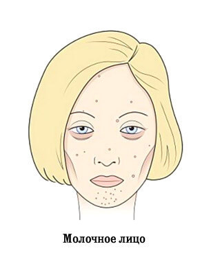 Употребление в пищу молока, сметаны, сыра, йогурта и сливок у некоторых людей способствуют появлению опухших век, мешков и темных кругов под глазами, мелких белых пятен или точек, а также неровностей в области подбородка.