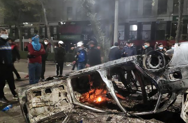 Уличные беспорядки в Киргизии не стихают: протестующие поджигают автомобили, строят заграждения