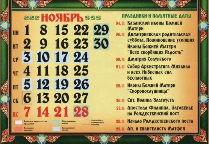 Также очень важной датой ноября является 28 число. Именно в этот день всегда начинается сорокадневный Рождественский пост.