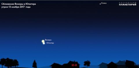 Почти целую неделю жители нашей страны смогут наблюдать на ночном небе сближение Луны, Марса, Венеры и Юпитера. 13 ноября в утренние часы можно было увидеть уникальное явление, которое в следующий раз случится лишь через столетие. Юпитер и Венера располагались на небе так, что казалось, они слились в одну планету. Конспирологи уделили этому факту повышенное внимание, они считают, что соединение Венеры и Юпитера может вызвать конец света на Земле.