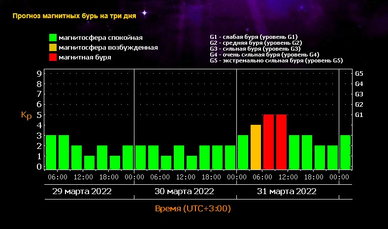 Последний день марта 2022 года будет отнюдь не самым благоприятным в плане геомагнитной обстановки. Поскольку в этот день, согласно прогнозу лаборатории рентгеновской астрономии Солнца, ФИАН, на Землю обрушится мощная магнитная буря.