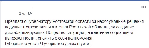 Мнение рядовых жителей поддерживают общественники, активисты и политики. Так, Александр Хуруджи написал на своей странице в Facebook о том, что горд решительностью ростовчан.