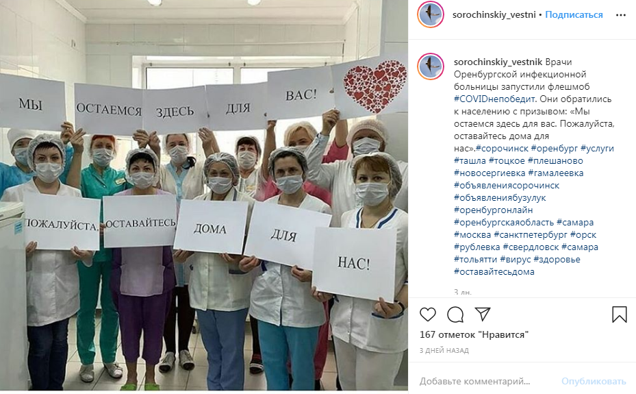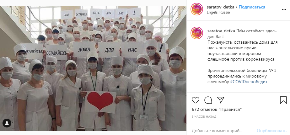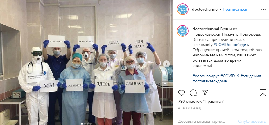 Российские медработники решили присоединиться к этой международной акции и стали выкладывать свои фотографии. В сети уже сейчас около трехсот фотографий в поддержку флэшмоба по предотвращению распространения коронавируса в мире.