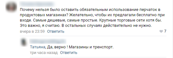 Отмена перчаточного режима, однако, обеспокоила некоторых волгоградцев. По их мнению, обязательное ношение перчаток нужно было оставить для посетителей магазинов и пассажиров общественного транспорта.