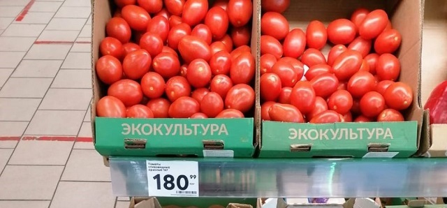 Однако настоящее удивление, которое они назвали "шоком", у сотрудников издания "Каспий.Инфо" вызвала цена на томаты в одном из супермаркетов города. Она оказалась непомерно высокой, за килограмм "золотых" помидор просят 180 рублей.
