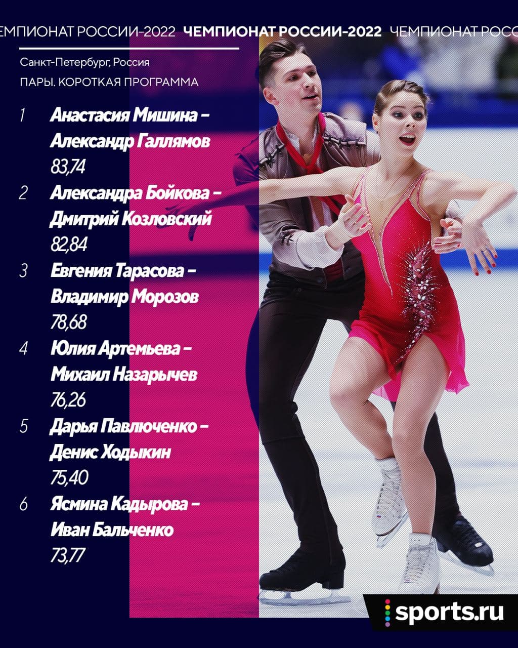 Российские спортсмены привычно доминируют в этом виде спорта. Особенно в женском одиночном катании и в парном. После короткой программы первые два места заняли подопечные Тамары Москвиной. А вот Владимир Морозов и Евгения Тарасова только третьи. Причина – сорванная поддержка. И это при том, что прыжковая часть программы была исполнена исключительно.