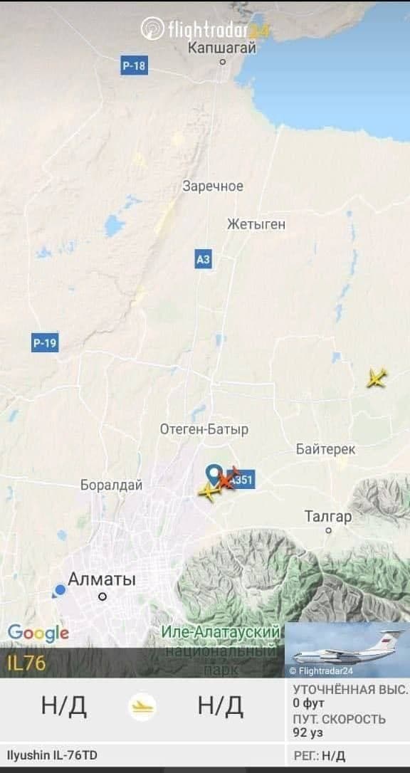 По части авиасообщения Казахстана с другими странами стали известно, что правительственный бизнес-джет вылетел из страны в Россию. Всего за последние сутки в Европу из Астаны и Алма-Аты вылетело около десяти частных джетов. При этом в Алматы приземлился большой грузовой борт из России ИЛ76.