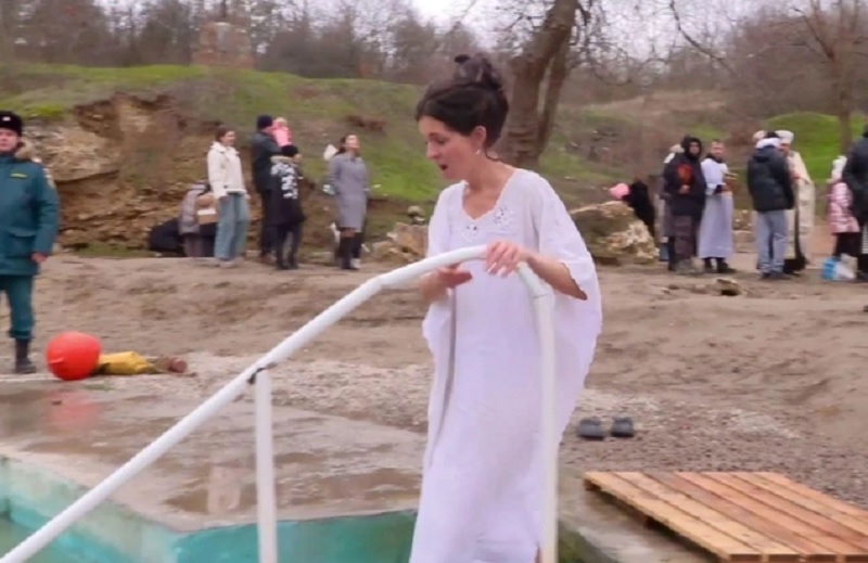 Рязанская журналистка сняла, как зашла в крещенскую купель в 50 км от фронта