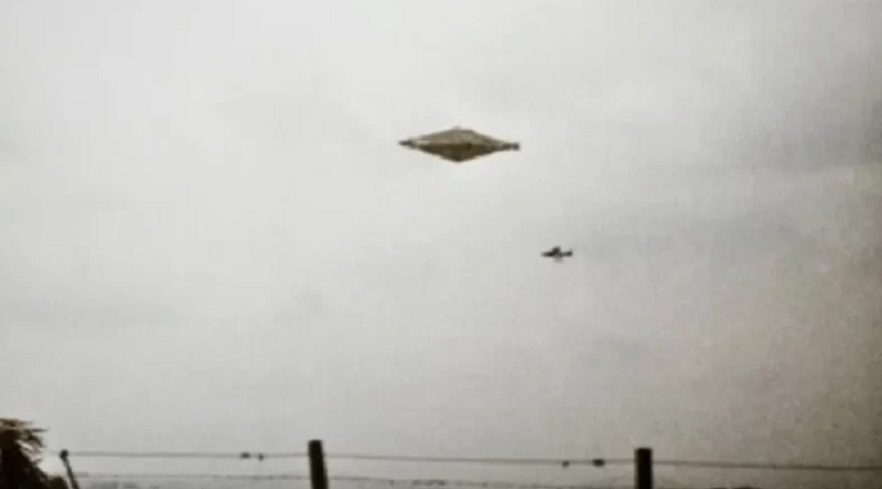 В августе 1990 года двое туристов в деревне Кальвин в Шотландии засняли на камеру загадочный ромбовидный объект, парящий в небе. Когда рядом пролетел истребитель «Харриер», НЛО поднялся вверх и исчез в облаках.