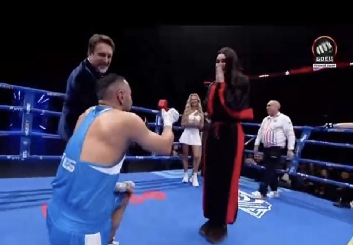 Камеры сняли, как Габил Мамедов сделал предложение Алсу после победы на ринге