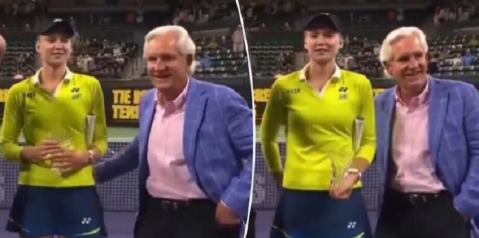 Камеры сняли, как Рыбакина убрала руку организатора с талии на награждении