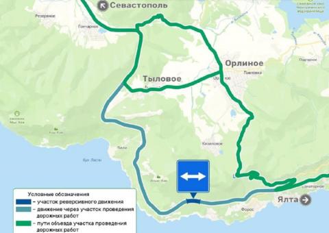 На трассе Ялта - Севастополь организовано реверсивное движение транспорта в связи с проведением противооползневых работ.